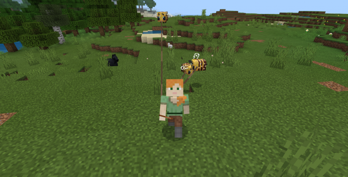 Добавили пчёл, которые будут добывать вкусный мёд. Пчёлы будут искать цветы и приносить их в свой улей. Будь осторожен, если вы сломайте улей, на вас нападут пчёлы.