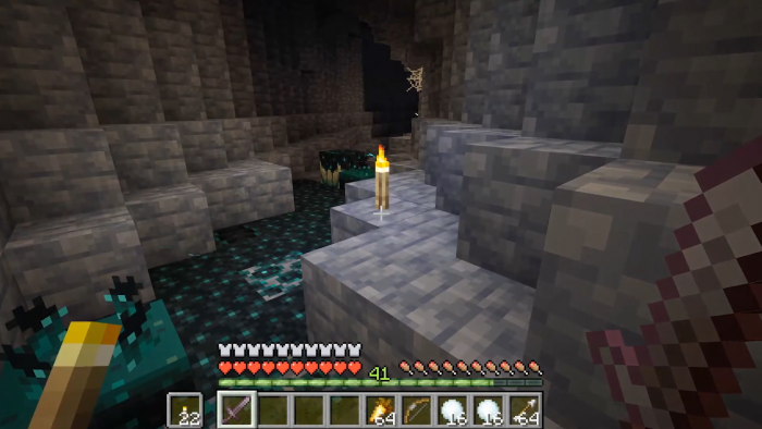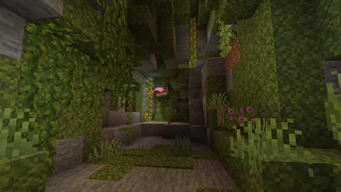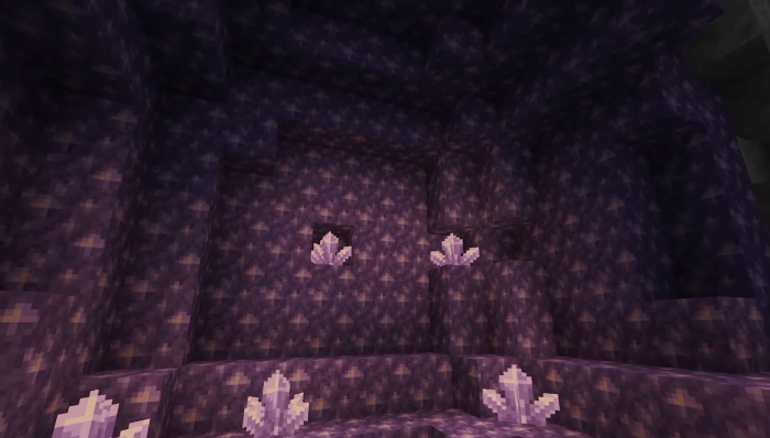 Ещё один биом который будет очень глубоко под землёй вместе с новыми блоками. Если в будущем найдёте одну из больших пещер, для вас будут доступны ценные ресурсы из которых можно сделать кучу разных вещей (браню, меч и др).