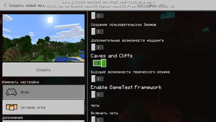 Старт будущего обновления "Пещеры и скалы" началось с Minecraft PE 1.16.200.52. Настоятельно рекомендуем загрузить версию Minecraft PE 1.17.0.58. В этом обновлении можно увидеть будущую версию Minecraft 1.17 которую обещают выпустить в конце 2021 года.
