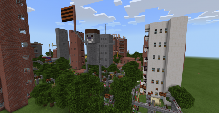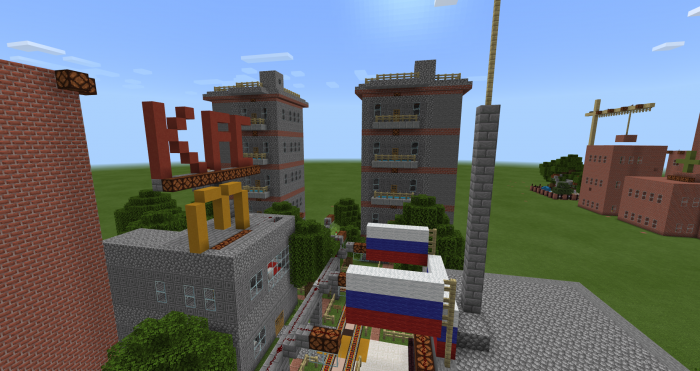 Из памятников можно подсчитать статую в честь Великой Отечественной войны под Сталинградской битвой 1941-1945 гг. Имеется небольшая постройка типа Петергофа под Петербургом, он построен из изумруда и золота. Также автор построил все здания для выживания - это больницы, школы, поликлиники и полицейский участок. Пока этого достаточно, возможно город будет прибавлять свои размеры в будущем.