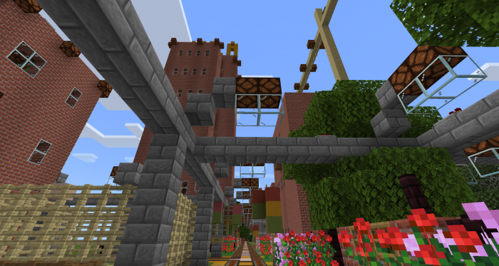 Эта карта представляет собой большой город с высокими зданиями и механизмами. Из механизмом только освещение города, для того чтобы его включить, вам необходимо зайти на станцию с большой трубой и нажать на рычаг. Освещение будет по всем улицам и зданиям.