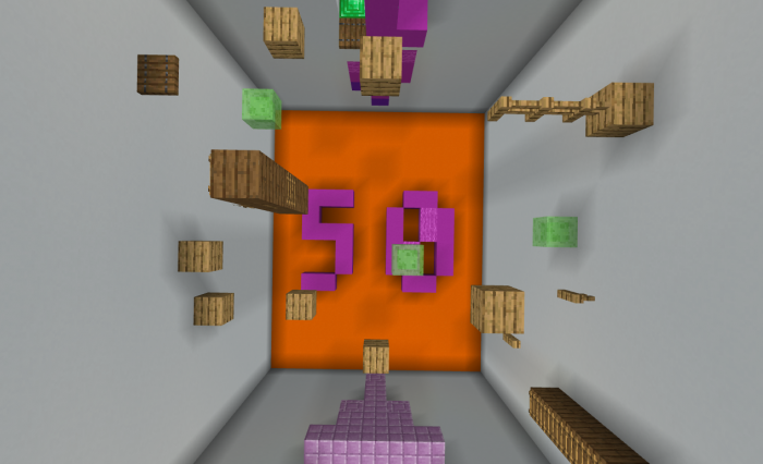 Паркур - это отличное время играть по сети с друзьями. На этой карте вы должны пройти 50 уровней с разыми уровни сложности. Каждый паркур имеет разную тему, например, в одном из уровней вы должны пробежать по плоской панели (стекло) - на второй, должны прыгать по блокам, вам понадобится широкий прыжок.