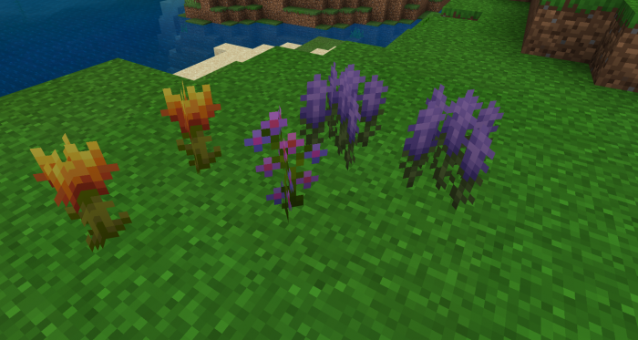 Также, автор дополнил в мод яркие цветы которые будут отлично смотреться в любых местах летнего биома. Три Цветка: