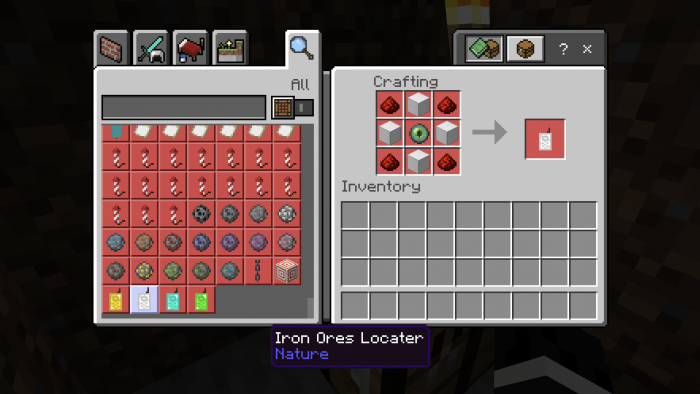 Мод Ores Locaters добавит 4 локаций которые помогут найти ресурсы сквозь блоков: железо, изумруды, алмазы и золото. При использовании данного мода получите ночное зрение для улучшенного поиска руд, но не сможете двигаться. Чтобы вернуться в нормальный тип выживания нажмите на предмет который вам выдадут.