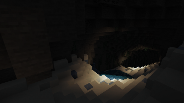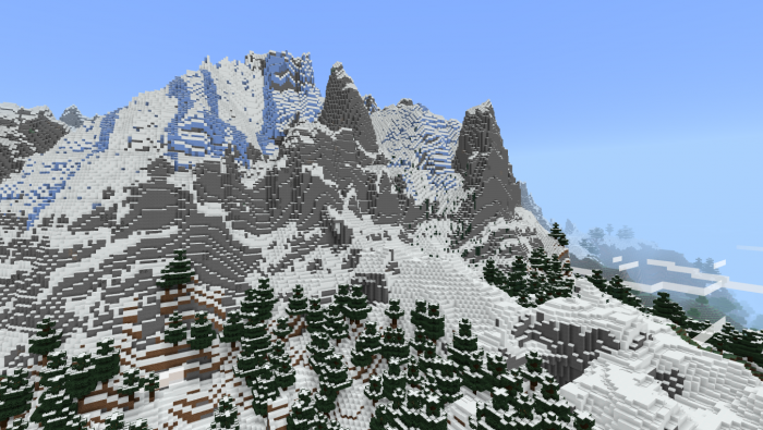 Это холодные горы, которые должны появиться в будущем обновлении Minecraft PE 1.17. Перейдя по координатам 310 210 200 вы увидите огромные зимние горы с ледяным льдом. В самом низу есть толстый лед который приведёт вас в глубину гор. При создании мира включите опцию «Saves and Cliffs».