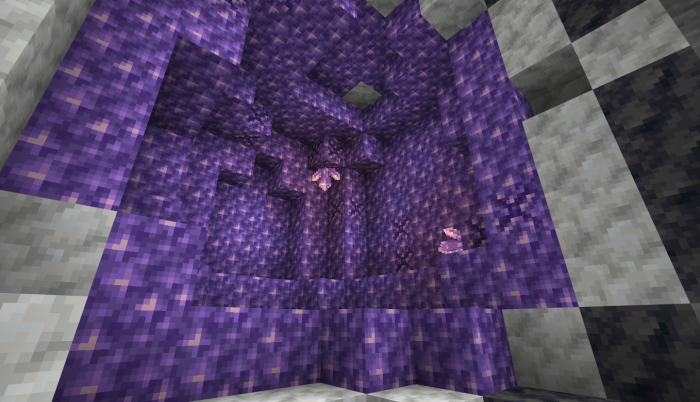 Никогда не видели Аметистовой жеоды в Minecraft PE 1.17? Перейдя по координатам -202 30 -541 вы увидите новую структуру, которую можно найти под землёй. Обычно их можно найти в больших новых пещерах, но иногда бывает, что они могут быть разбросаны по всей земле, что не даст найти этот объект.